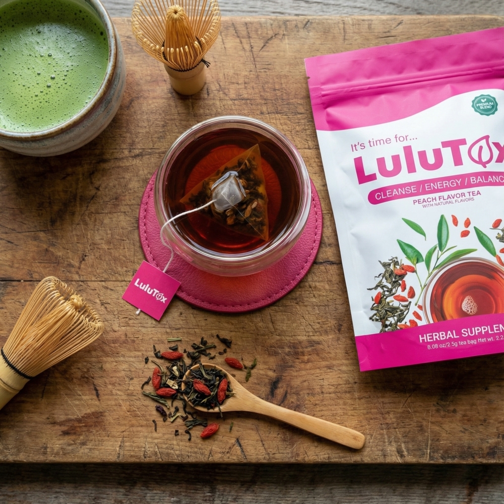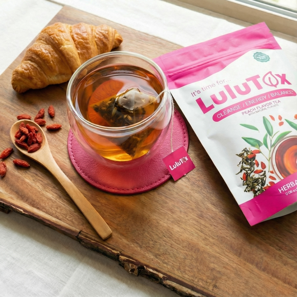 A peach-flavored herbal tea blend crafted for a simple daily ritual that supports balance, lightness, and feel-good energy