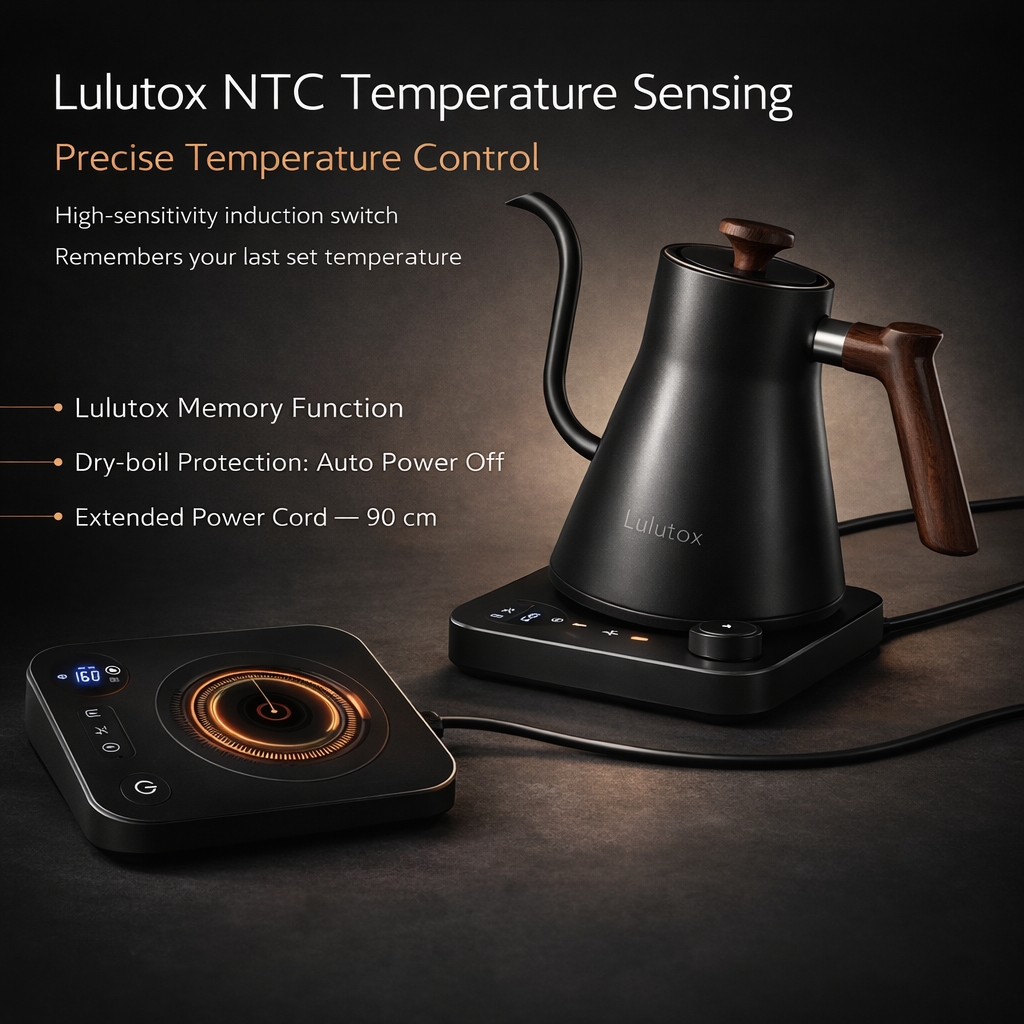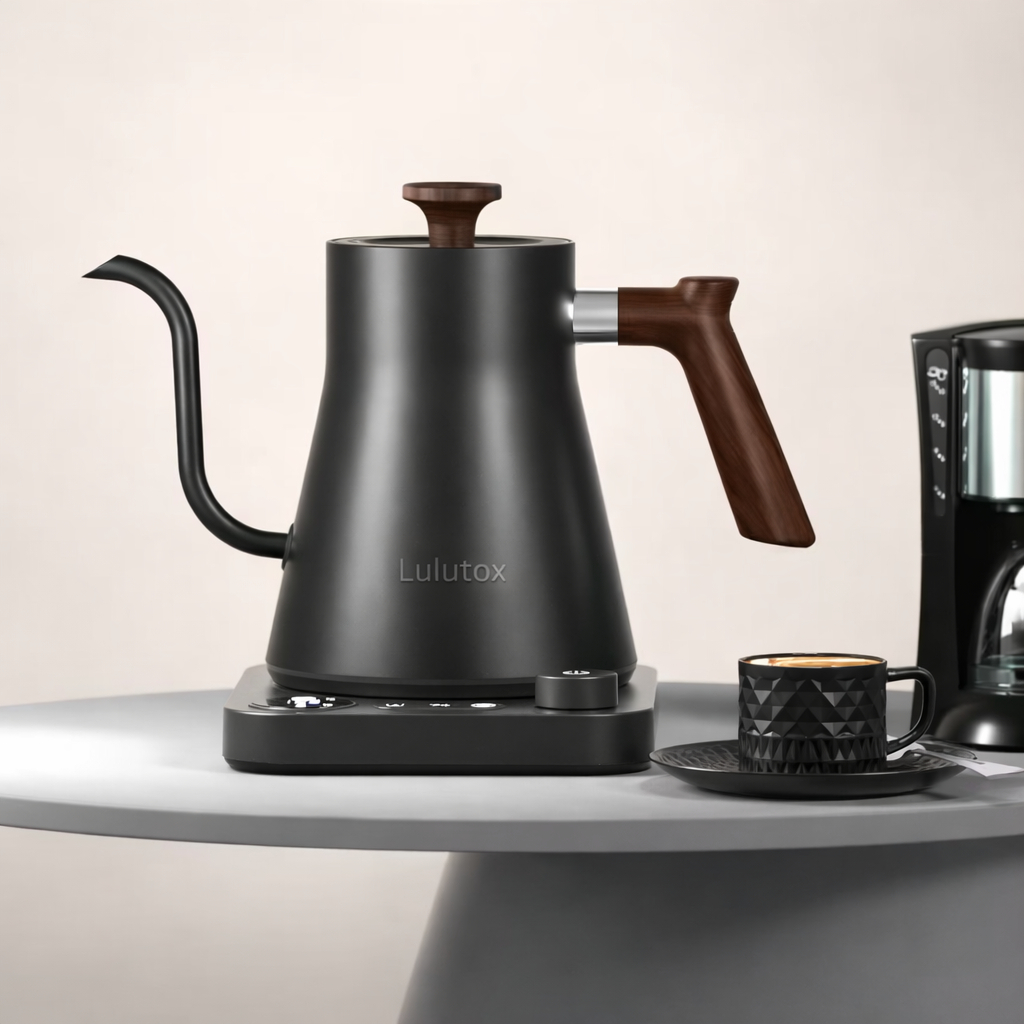 A precision gooseneck kettle with mechanical temperature control, made for smooth pouring and perfectly brewed tea, every time.
